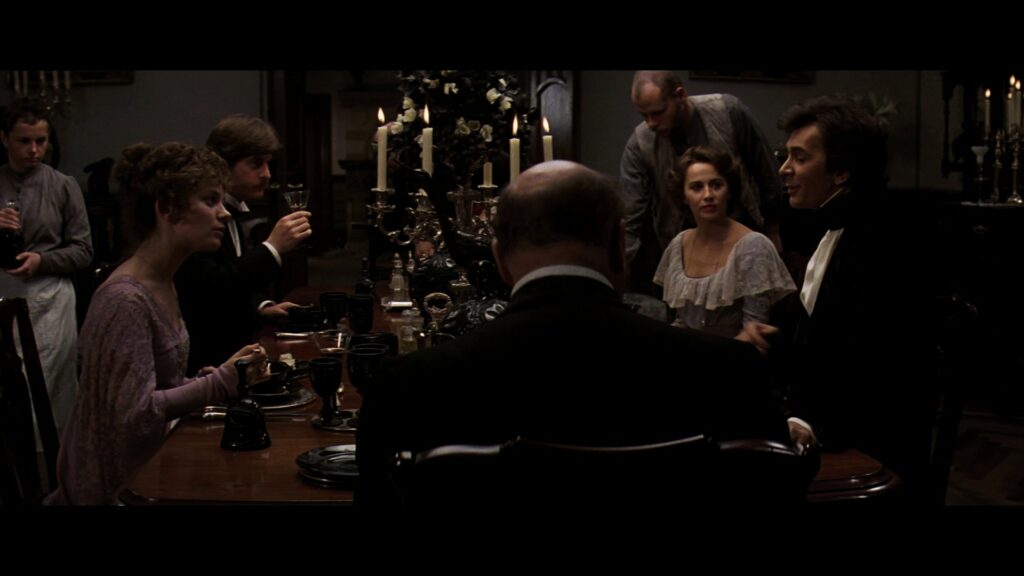 Die Dinner Party beginnt und Graf Dracula zieht nach der Ankunft in seiner Kutsche sofort alle Blicke und Gespräche auf sich. Das Essen rührt er nicht an und nachdem sich der Diener geschnitten hat und Blut fließt erkennt man in seinen Augen das Verlangen. Im späteren Verlauf des Abends erläutert der Graf seine Gründe für den Umzug. Kurz darauf erleidet Mina eine Ohnmacht. Durch Hypnose befreit Dracula Sie von ihren Schmerzen. Nach einem Tanz mit Lucy beginnt seine Liebe zu ihr zu entbrennen.